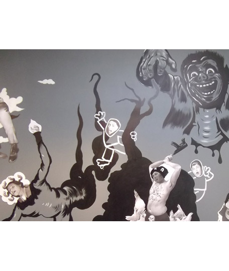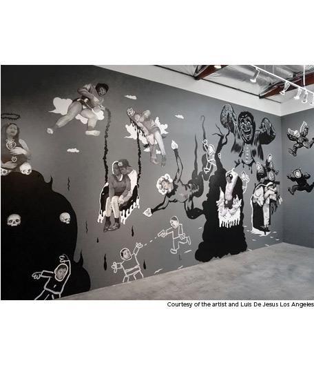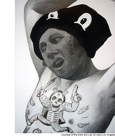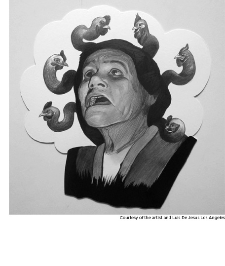 narco wealth. Mixed with these foibles and idiosyncrasies are people that appear to be always in transition, crossing or waiting to cross a socio-political and economic border to perceived “greener pastures.” These drawings are my satirical fantasies: Tijuana as a place of purgatory. Horribly real, humorously weird and often bizarre, there is a complicity and an acceptance that one can grow accustomed to anything as long as there is a deal to make and money to be made.