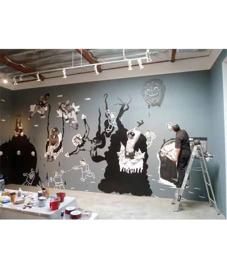 Tijuanerias pays homage to Goya's "Caprichos" with its depiction of grotesque figures and themes done in an informal, sketch-like style. My work describes an existing dichotomy in Tijuana. A place of fetishes, cartoons, and graffiti scribbles alongside a threatening and deeply ingrained rationality governed by money, political interest and empty gestures of civility.